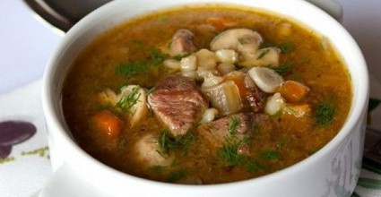Суп грибной с говядиной